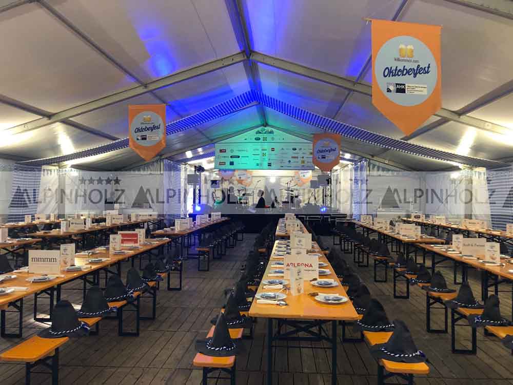 Unas mesas y bancos plegables de madera resistentes, es una condición indispensable de cualquier fiesta de la cerveza, donde la gente se sube encima para poder cantar y disfrutar sin temor alguno. En Alpinholz somos fabricantes de las auténticas mesas cerveceras alemanas, que ofrecemos en alquiler o venta.