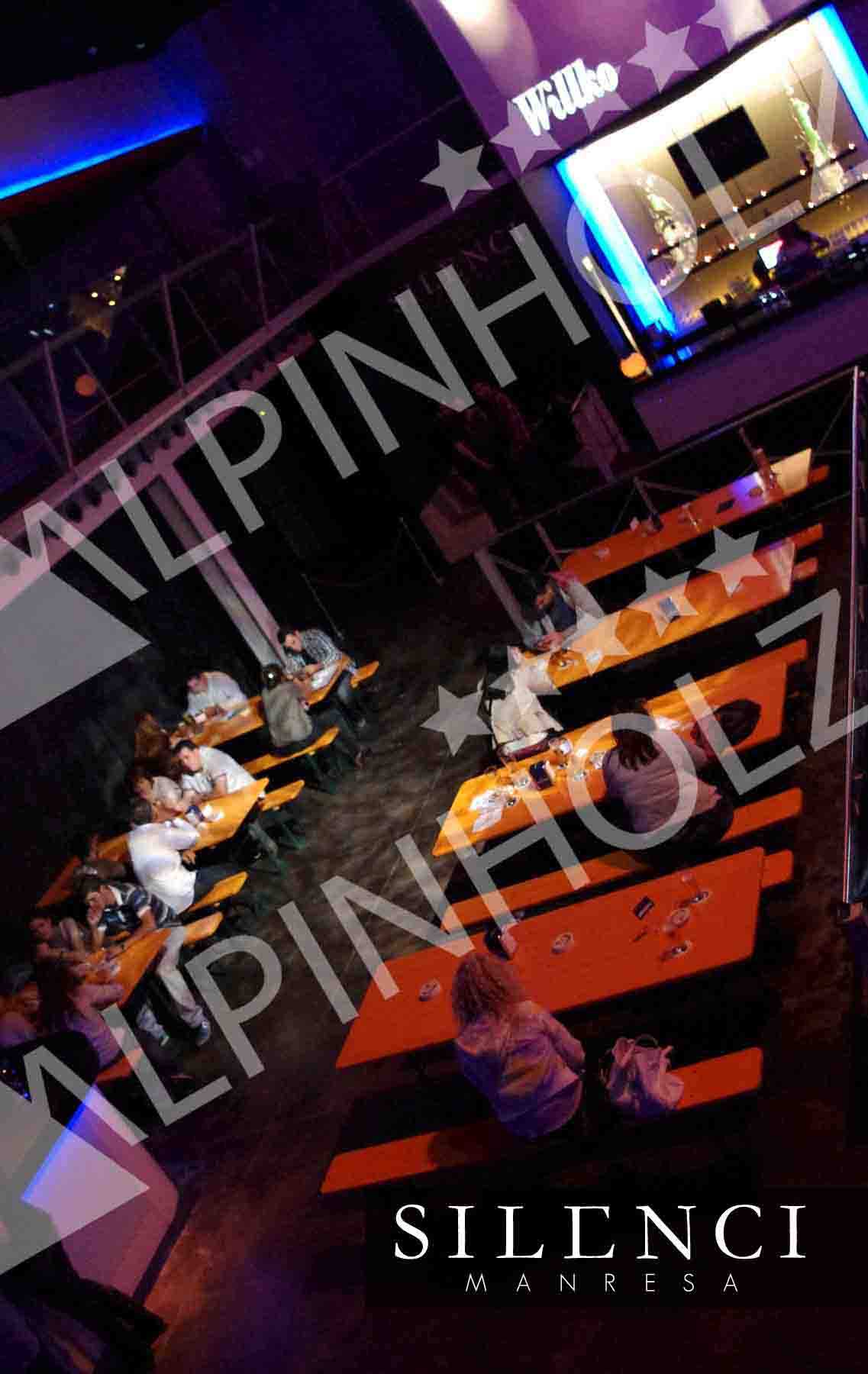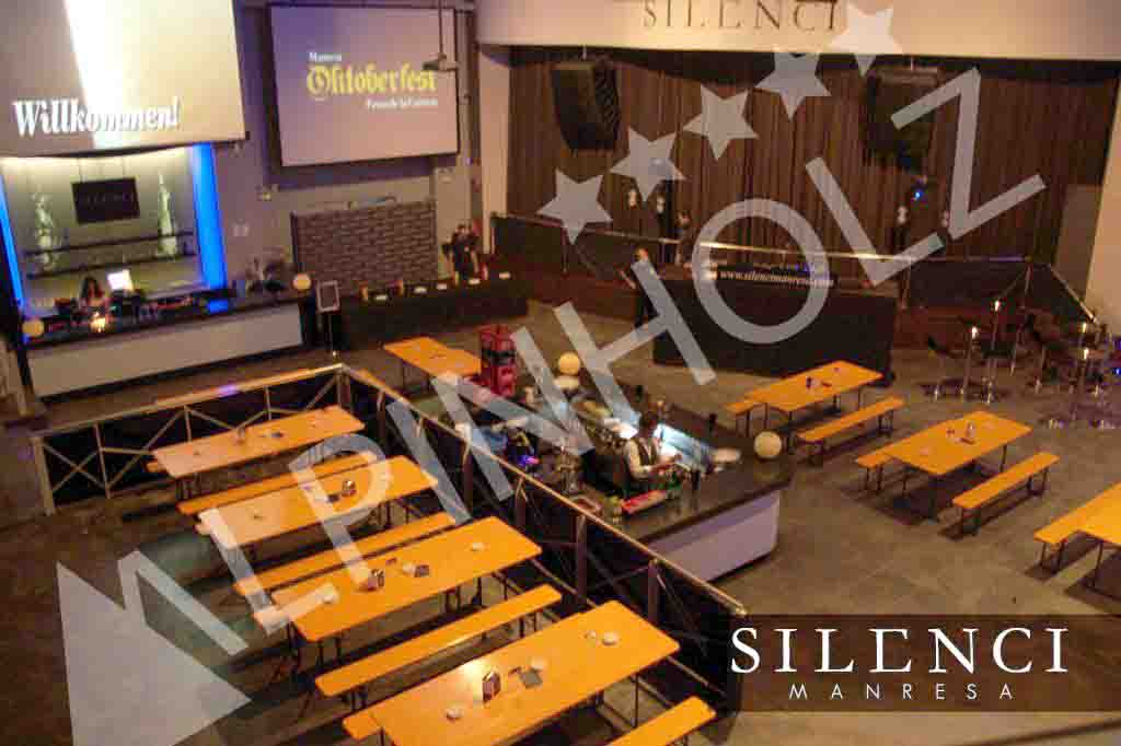 En Alpinholz y, como fabricantes de mesas plegables, ofrecemos alquiler y venta de mesas plegables cerveceras. Estas son las imágenes de la sala Molt Silenci de Manresa, en Barcelona. Usaron nuestras mesas y bancos plegables de madera para la fiesta de la cerveza que organizaron recientemente. Una Oktoberfest especial y diferente con buena gente y un gran ambiente.