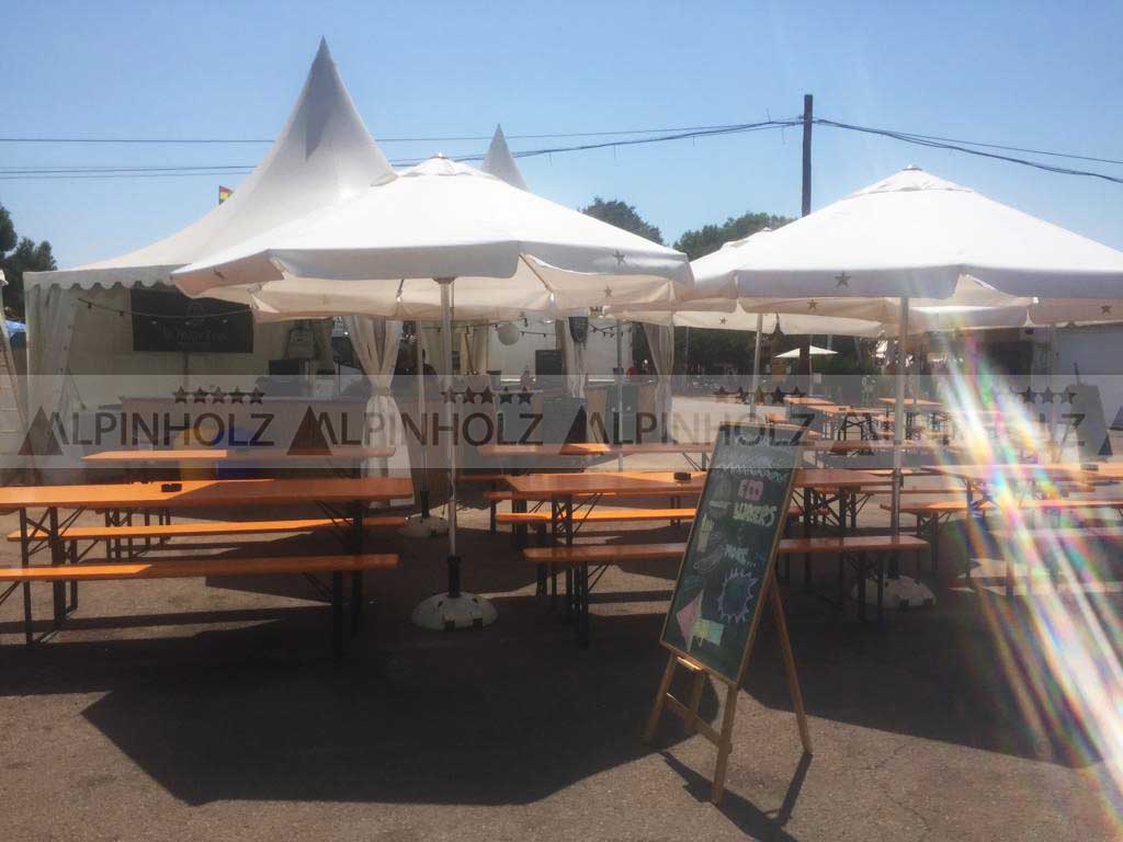 En Alpinholz somos los fabricantes de las auténticas mesas de las Oktoberfest, que ofrecemos en venta o alquiler para diferentes usos. Son aptas para eventos musicales, así como comidas populares, fiestas… o para el jardín.