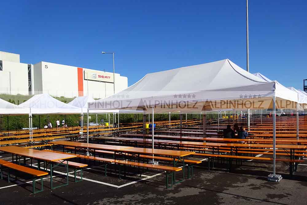 En Alpinholz somos fabricantes de bancos y mesas plegables, las típicas y auténticas mesas cerveceras de las fiestas de la cerveza de Alemania. Y ofrecemos nuestras mesas y bancos, tanto en venta como en alquiler. Situados en la ciudad de Barcelona, desde donde servimos a toda la Península Ibérica, así como en Andorra, y las Islas Canarias y Baleares. Disponemos de capacidad para sentar a más de cuatro mil personas, consúltenos. Mesas plegables de madera para eventos.
