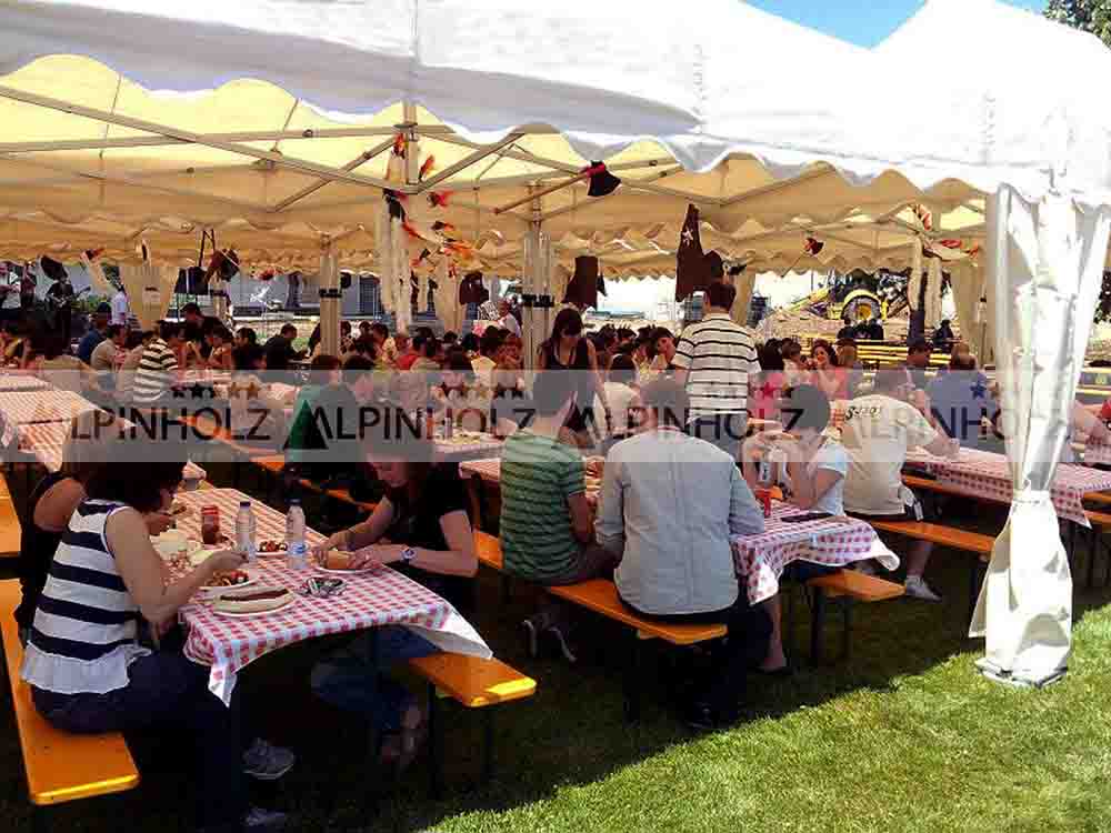 En Alpinholz somos, desde hace más de treinta años, fabricantes de bancos y mesas plegables para eventos al aire libre. Un producto con certificación de calidad TÜV. Mesas que ofrecemos en venta o alquiler para fiestas de empresa, así como para ferias, bodas, catering, celebraciones…..